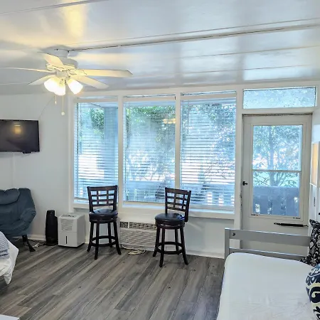 Featuring an outdoor swimming pool, a picnic area and an aqua park onsite, the 1-room Renovated, Oceanfront Building, Boardwalk, Pool, Beach, 4 People, Cozy Studio Unit, Walk Right Out No Elevator, Kitchen, Restaurant Apartment is situated in the Virginia Beach Boardwalk district, about 10 minutes by car from Naval Aviation Monument. There are also a microwave oven, a fridge and a washing machine available.